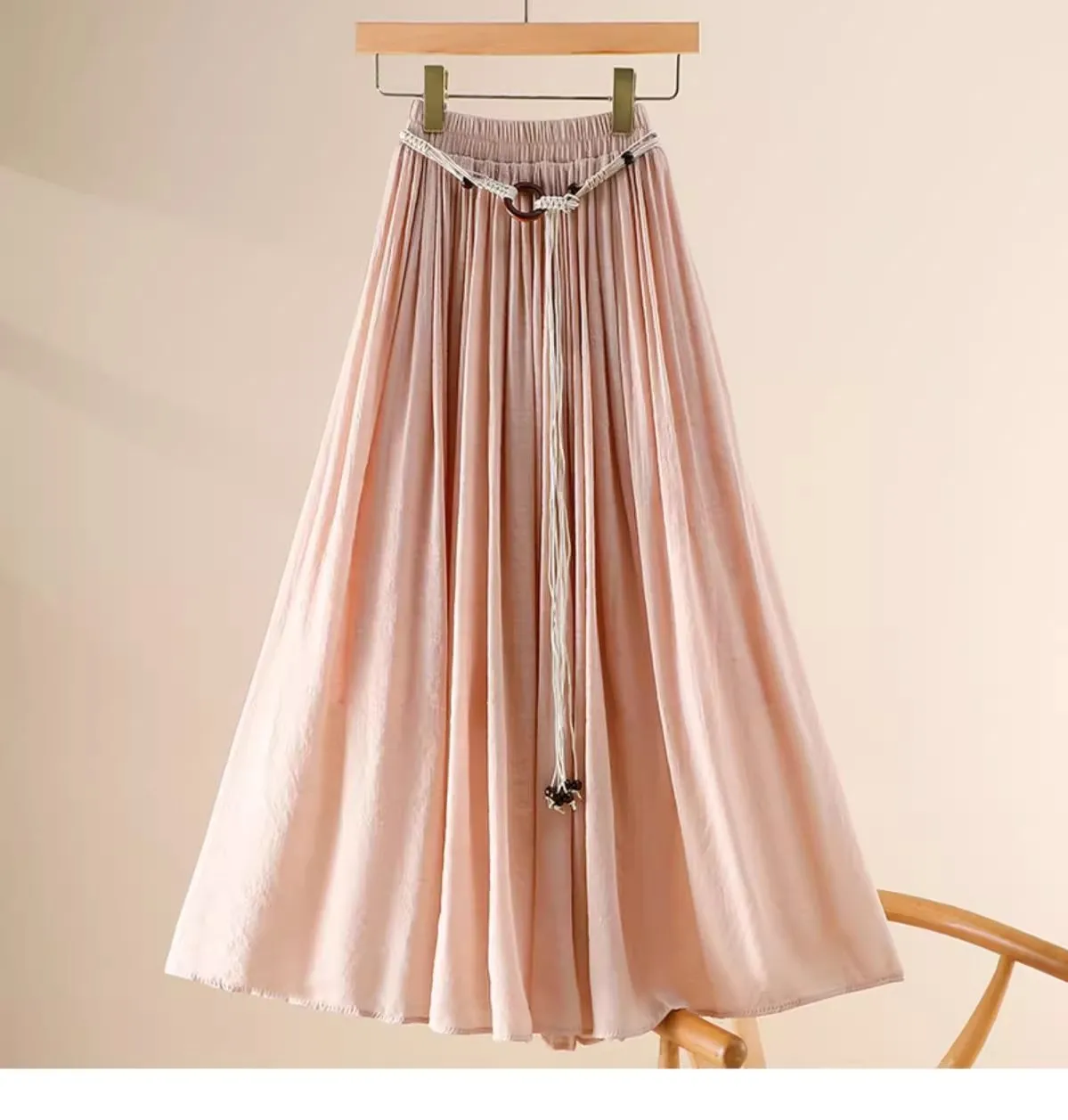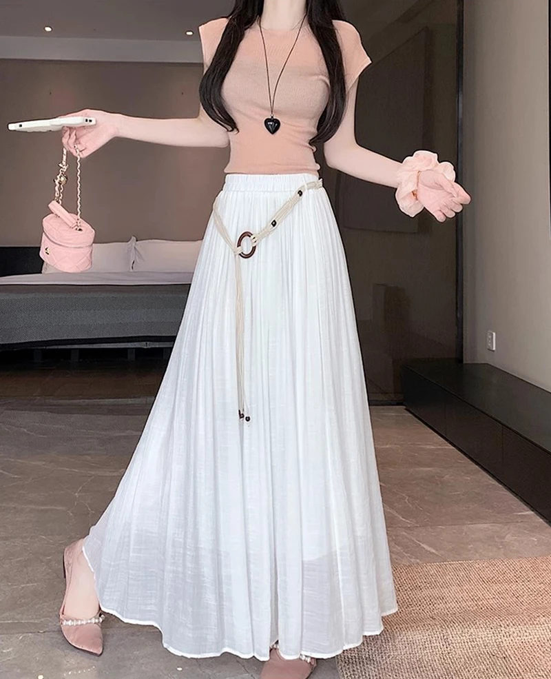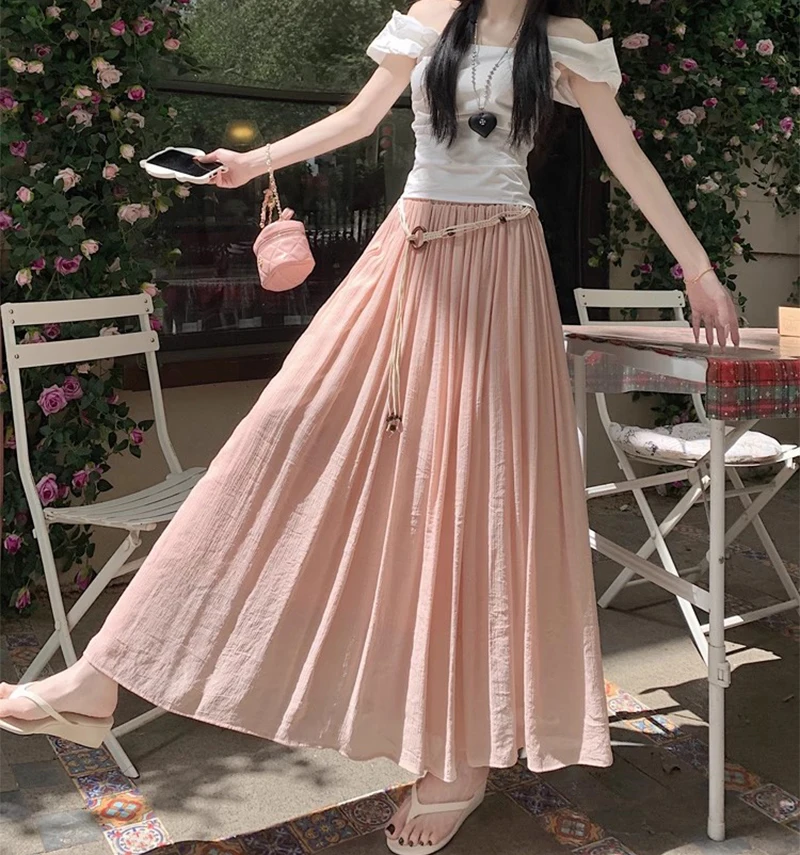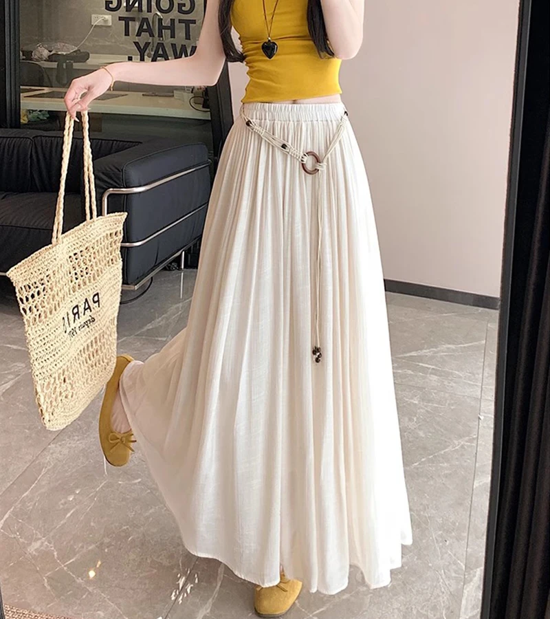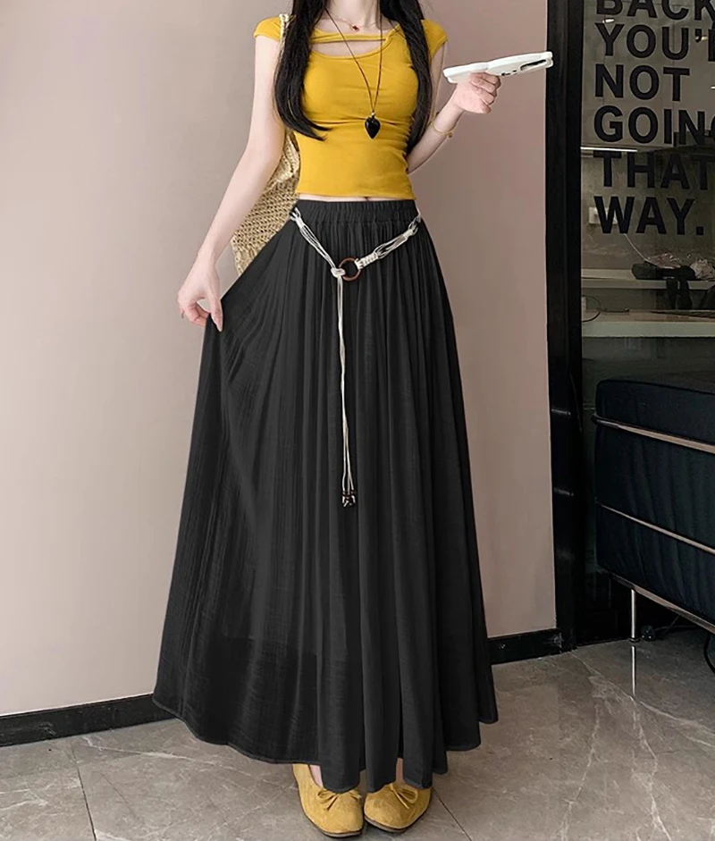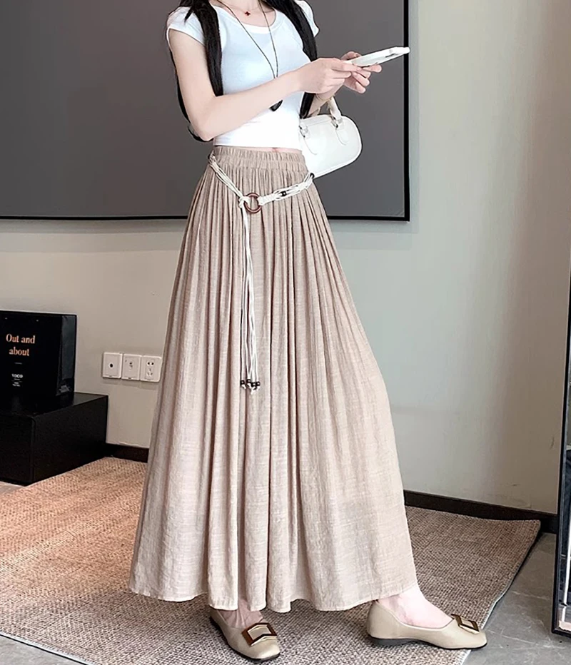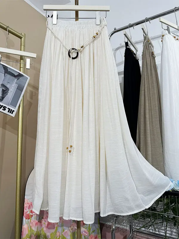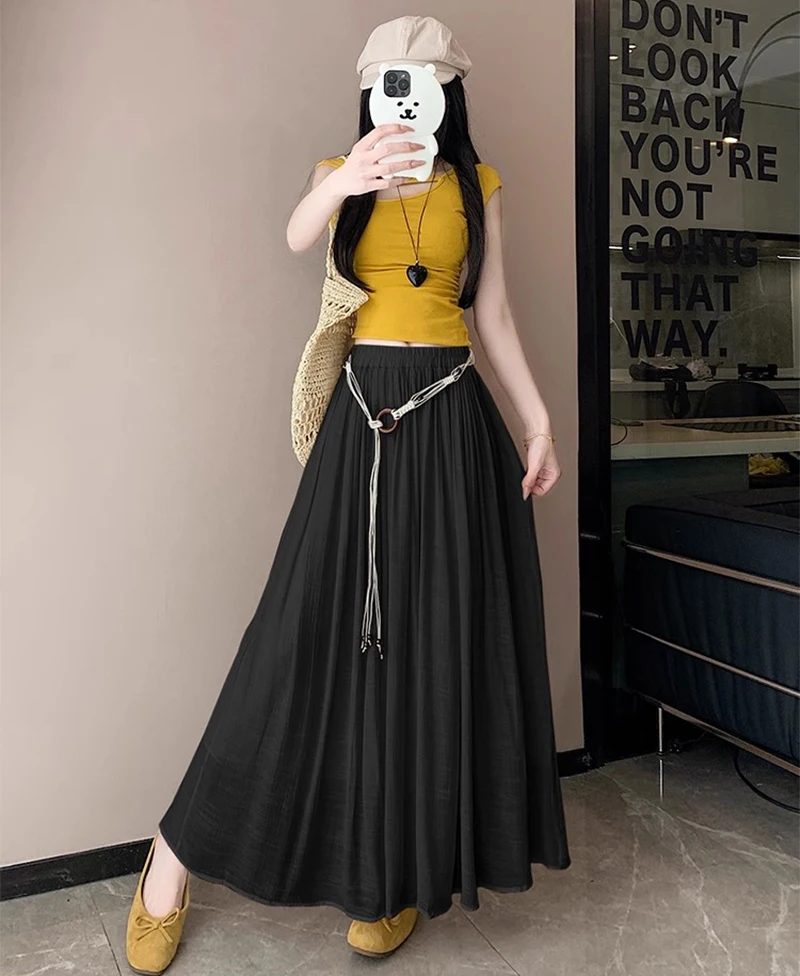 Designed with a comfortable empire waist and adjustable sash detail, this skirt offers a flexible fit that works for a variety of body types. The solid color and minimalist design make it endlessly versatile—perfect for casual days, travel, gatherings, or dressed-up moments with simple accessories.