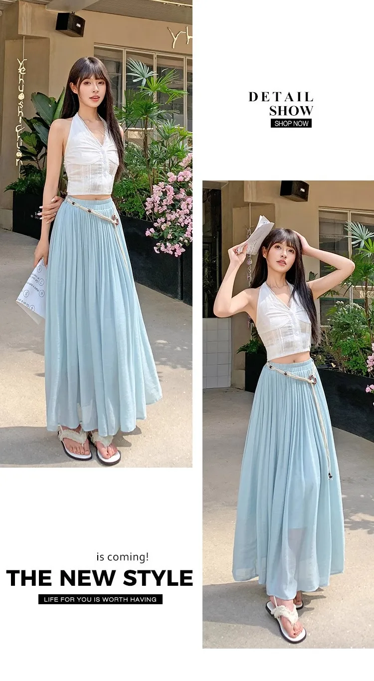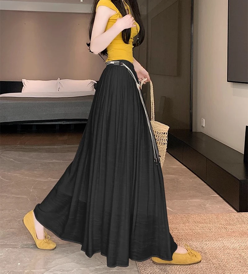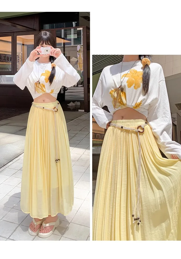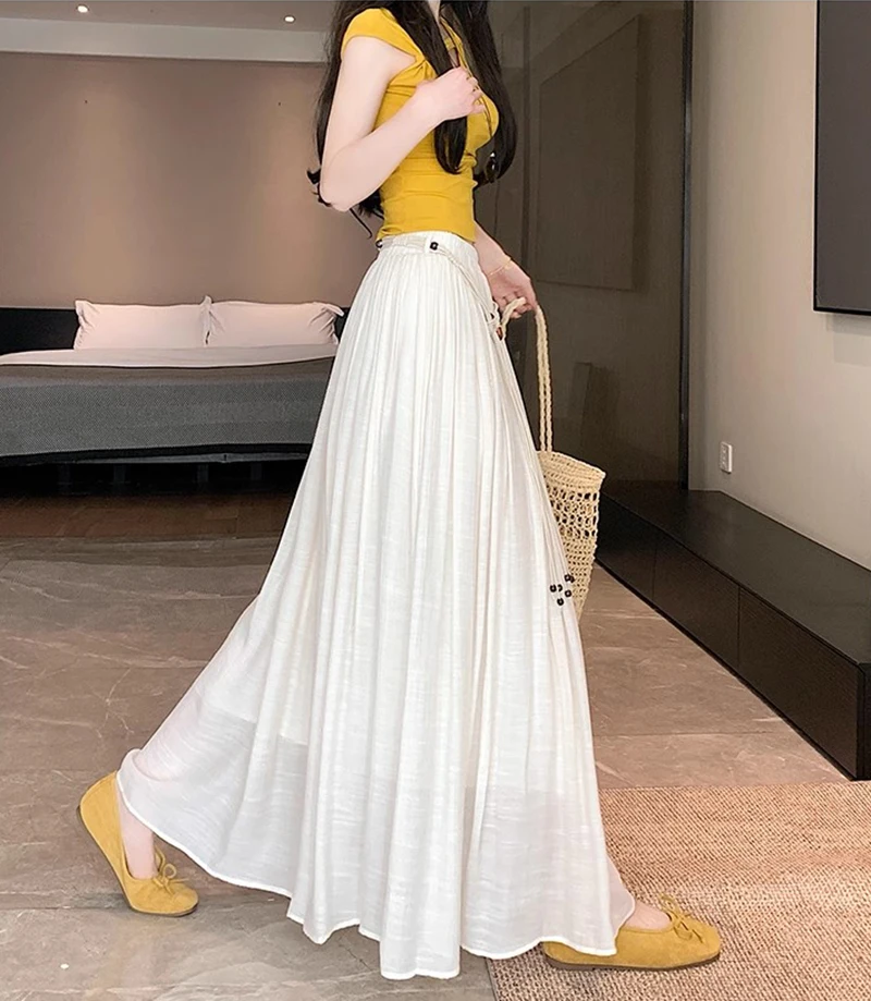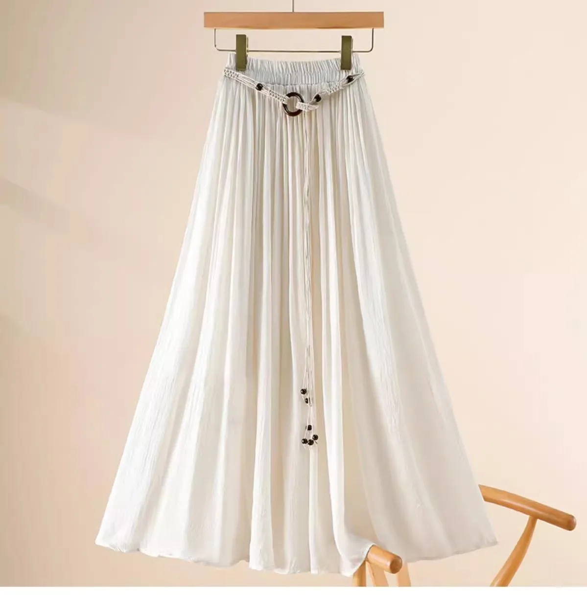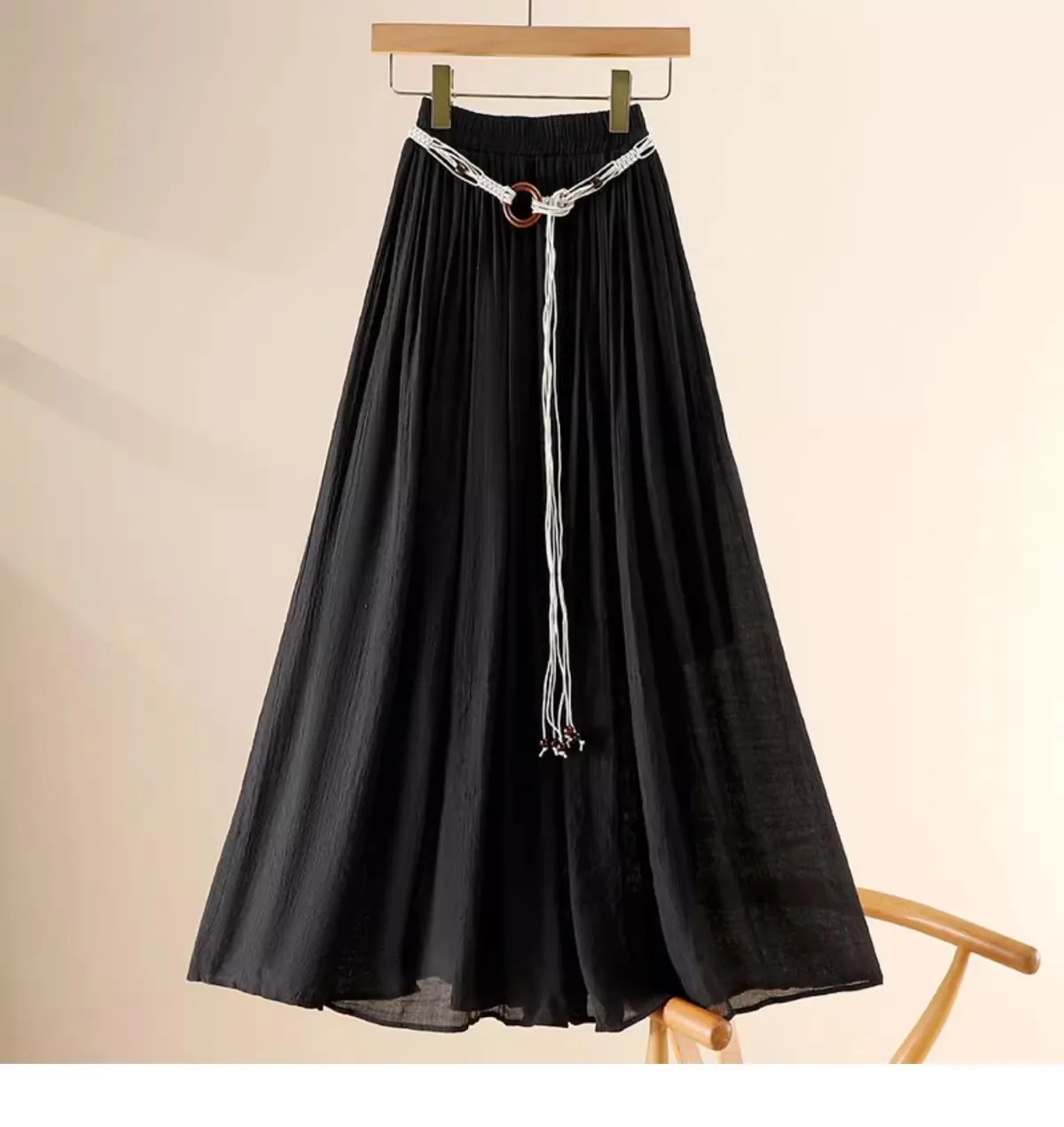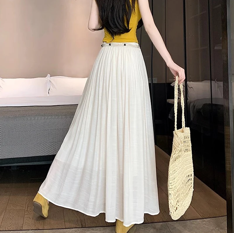 Designed with a comfortable empire waist and adjustable sash detail, this skirt offers a flexible fit that works for a variety of body types. The solid color and minimalist design make it endlessly versatile—perfect for casual days, travel, gatherings, or dressed-up moments with simple accessories.